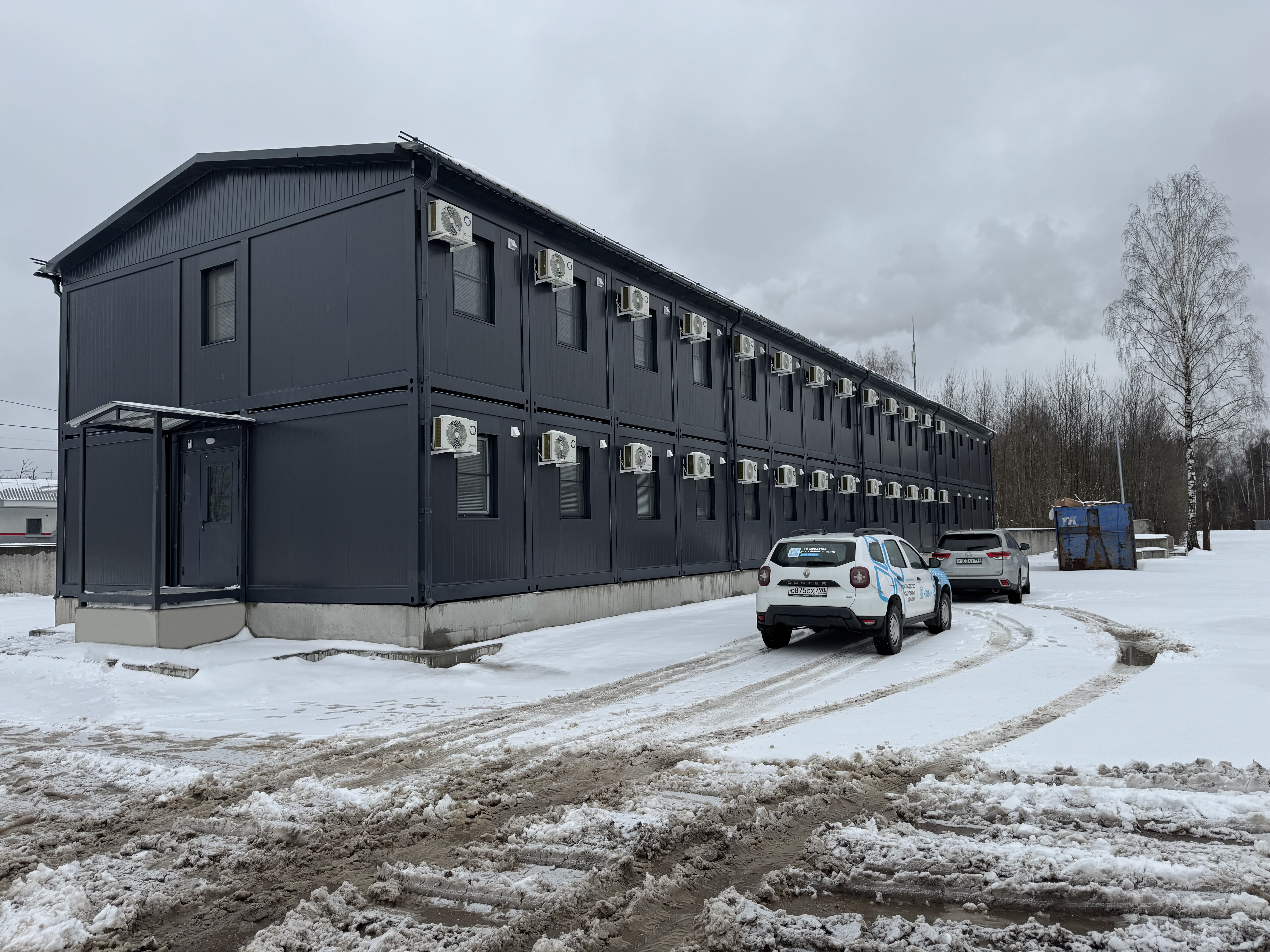Общежитие, смонтированное в кратчайшие сроки, включает просторные жилые блоки, санузлы, зоны общего пользования и помещения для отдыха. Модули «Каскад» позволили организовать эргономичное пространство с продуманной инфраструктурой, что особенно важно для долгосрочного проживания. Технология КФМК гарантирует высокую теплоизоляцию, энергоэффективность и пожарную безопасность объекта.